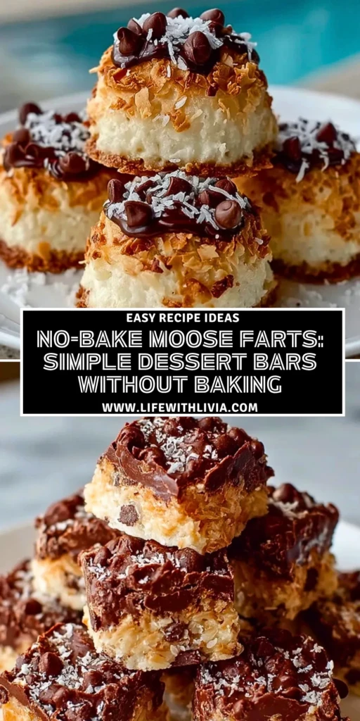 No-Bake Moose Farts are a charming, playful dessert that comes together effortlessly. With just a few ingredients and no oven required, they’re a must-try for coconut and chocolate lovers alike. Make them your own with fun toppings or add-ins and keep them chilled for the perfect anytime snack. Sweet, chewy, and utterly irresistible!