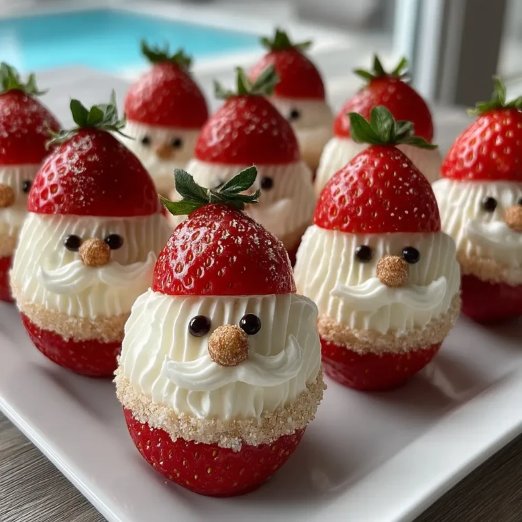 Keywords: Christmas dessert, holiday treats, no-bake strawberry Santas, easy festive snack, kids holiday recipe