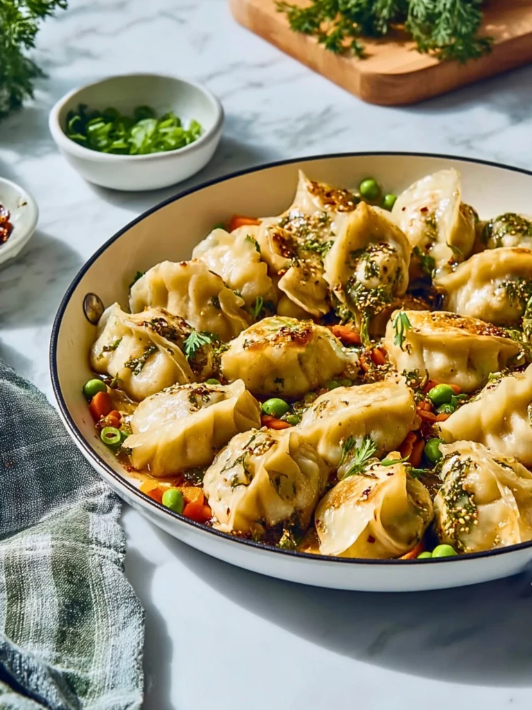 There’s something effortlessly comforting about a dish that brings together savory dumplings, fresh vegetables, and a punchy sauce—all in just one pan. This One Pan Dumpling Dinner is a weeknight dream: it’s fast, flavorful, and only uses one pan, meaning cleanup is a breeze.