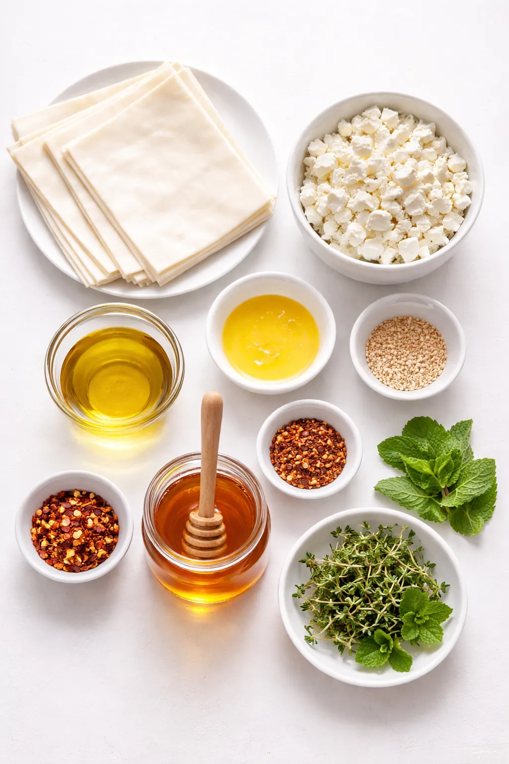The beauty of this dish is in its texture and contrast: crunchy layers of phyllo give way to warm, salty cheese, and then the drizzle of chili honey adds a sweet heat that lingers on your lips. Finished with a sprinkle of toasted sesame seeds and fresh herbs, this recipe turns basic ingredients into something unexpectedly luxurious.