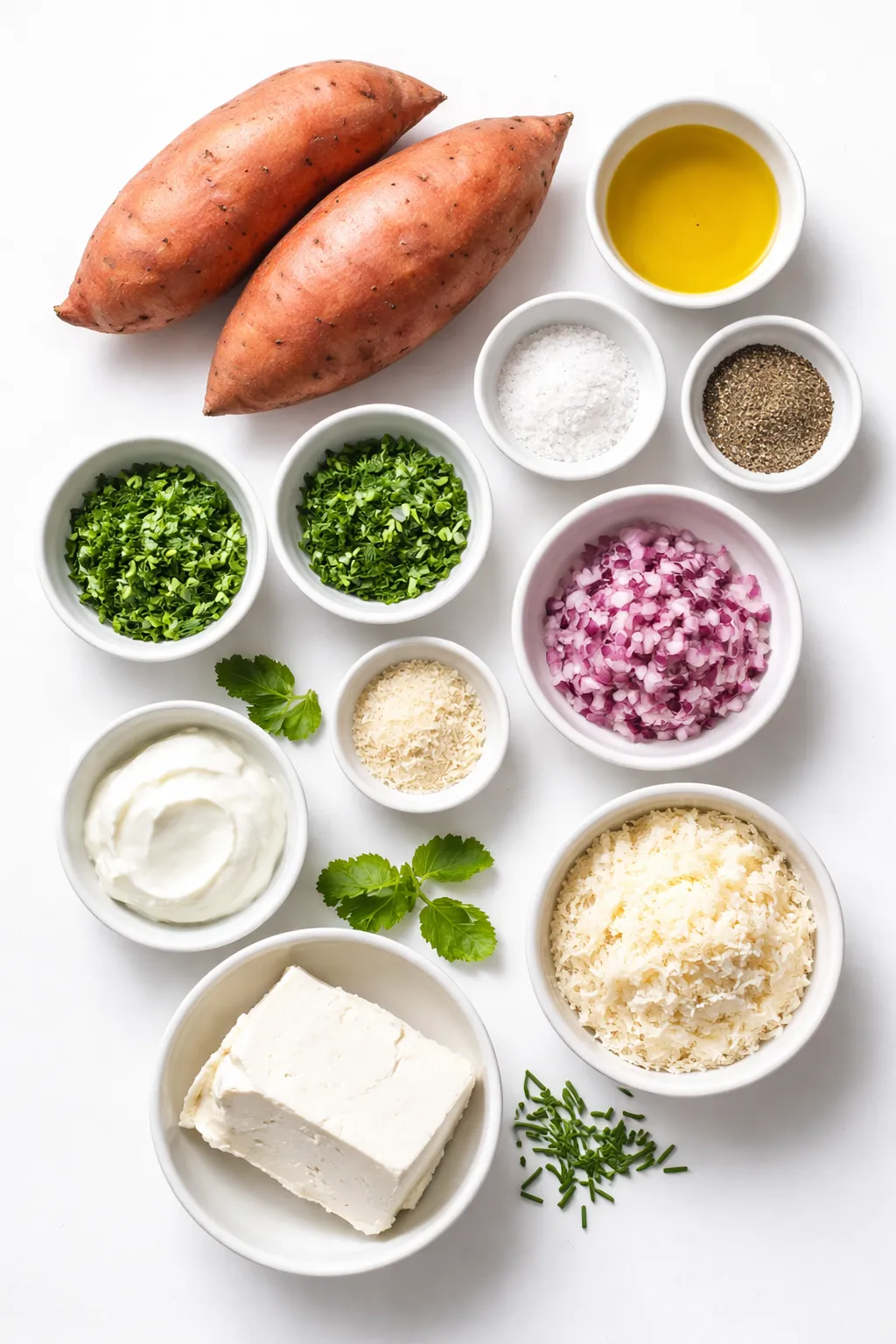 Whether you’re planning a dinner party or just want a satisfying snack that doesn’t take a lot of prep, this recipe is an easy go-to. The sweet potatoes offer a naturally sweet, nutritious base, while the Parmesan and herbed cream topping add a creamy, savory punch in every bite.