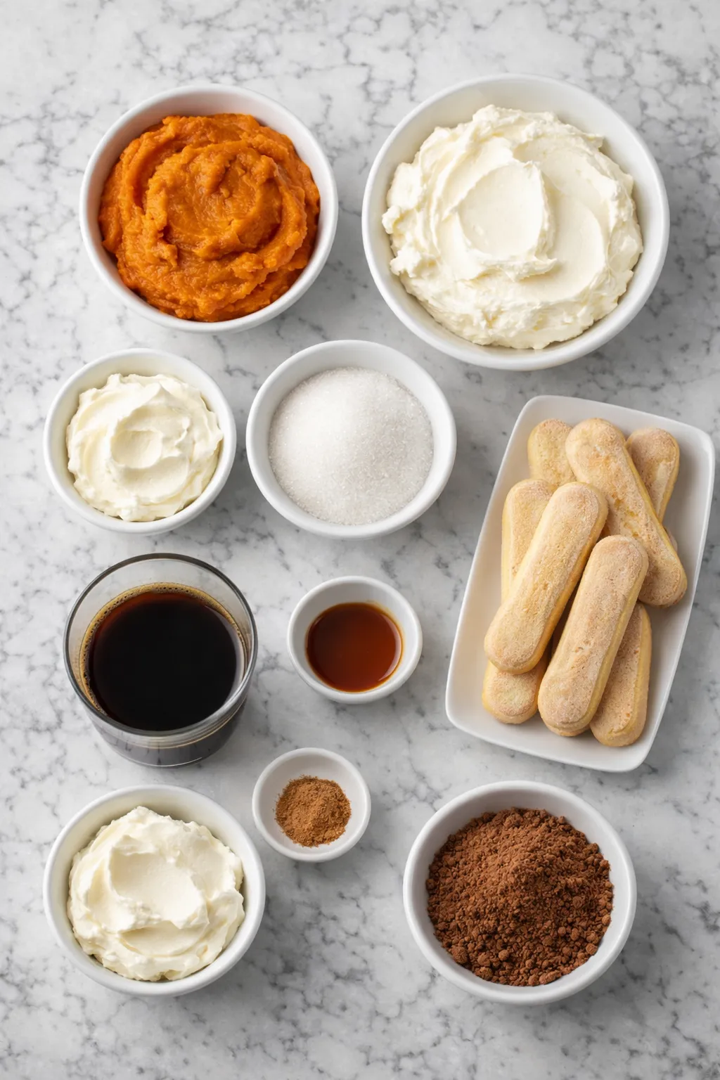 Look for firm, crisp ladyfingers (often labeled “savoiardi”) for best results. These will soak up the espresso-pumpkin mixture without turning mushy. Avoid the soft sponge-cake type, which can fall apart easily. If using homemade, let them dry out slightly before assembling.