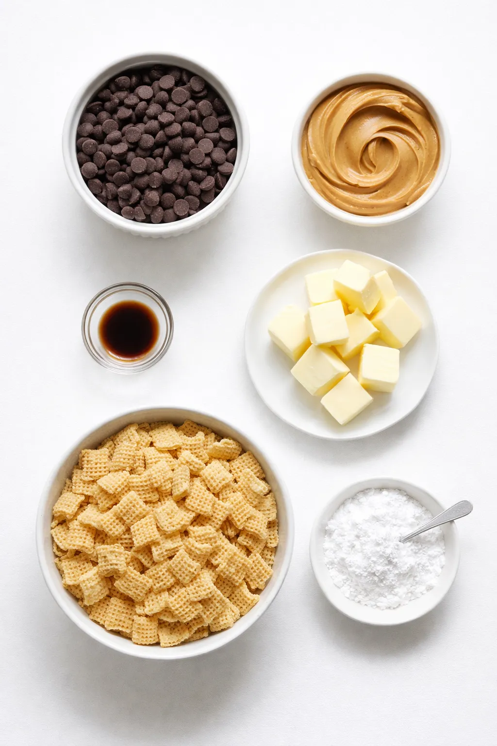 • Powdered sugar: Finishes the bars with a snowy-sweet coating, true to classic puppy chow.