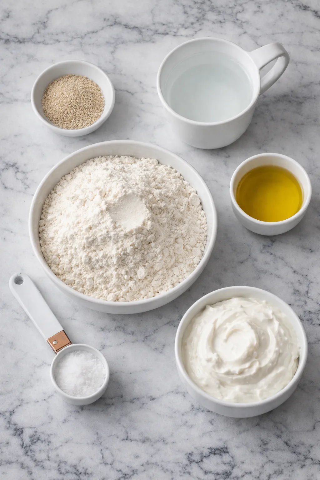 - Plain Greek yogurt – Helps create a softer interior and a slightly tangy taste that suits this style of pita.
