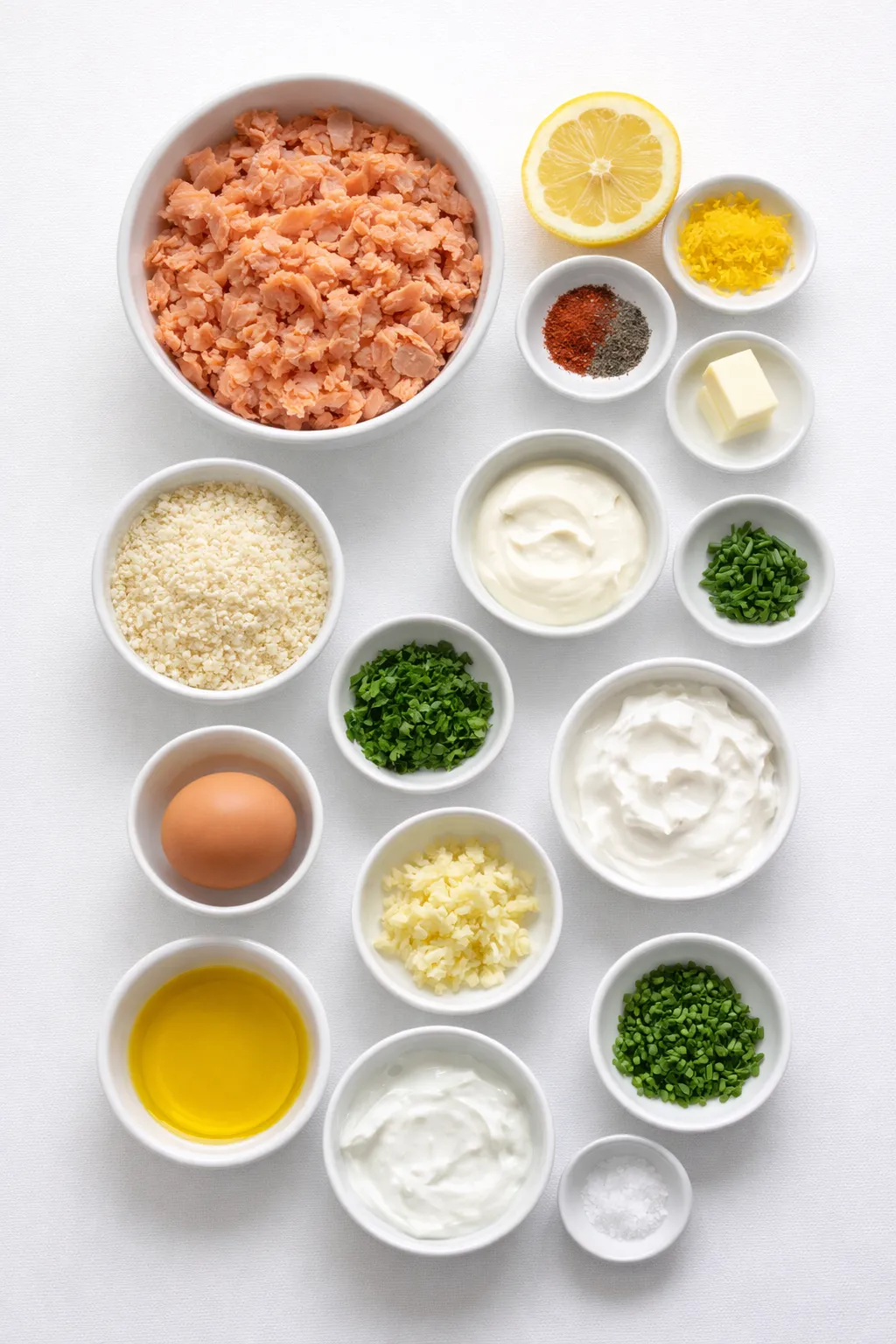 Ingredients for the Salmon Patties with Creamy Lemon-Garlic Sauce