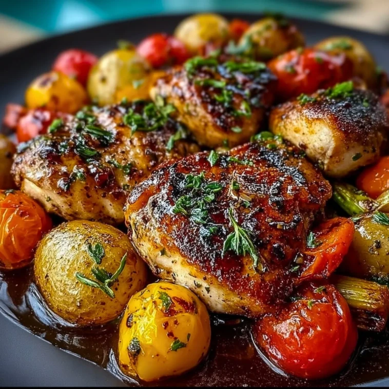 This recipe makes weeknight meals feel special. The sweetness of balsamic vinegar, combined with aromatic herbs and golden-roasted vegetables, turns everyday ingredients into a restaurant-worthy meal. It’s colorful, hearty, and balanced, perfect for a family dinner or casual entertaining.