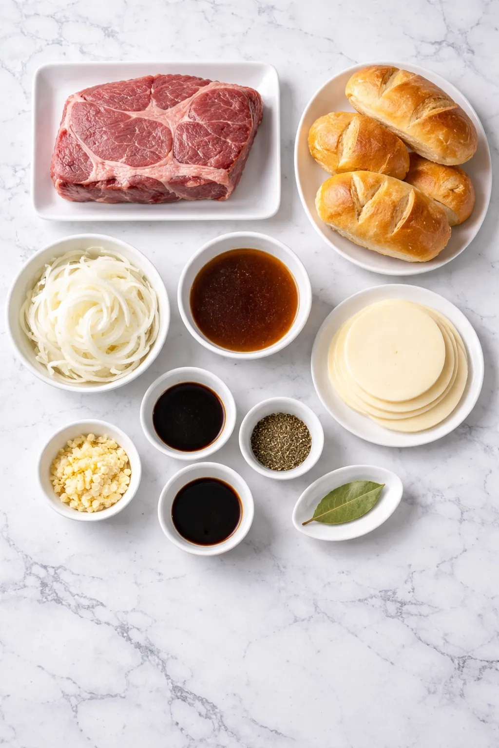 • Beef broth – Forms the base of the au jus and adds rich depth.