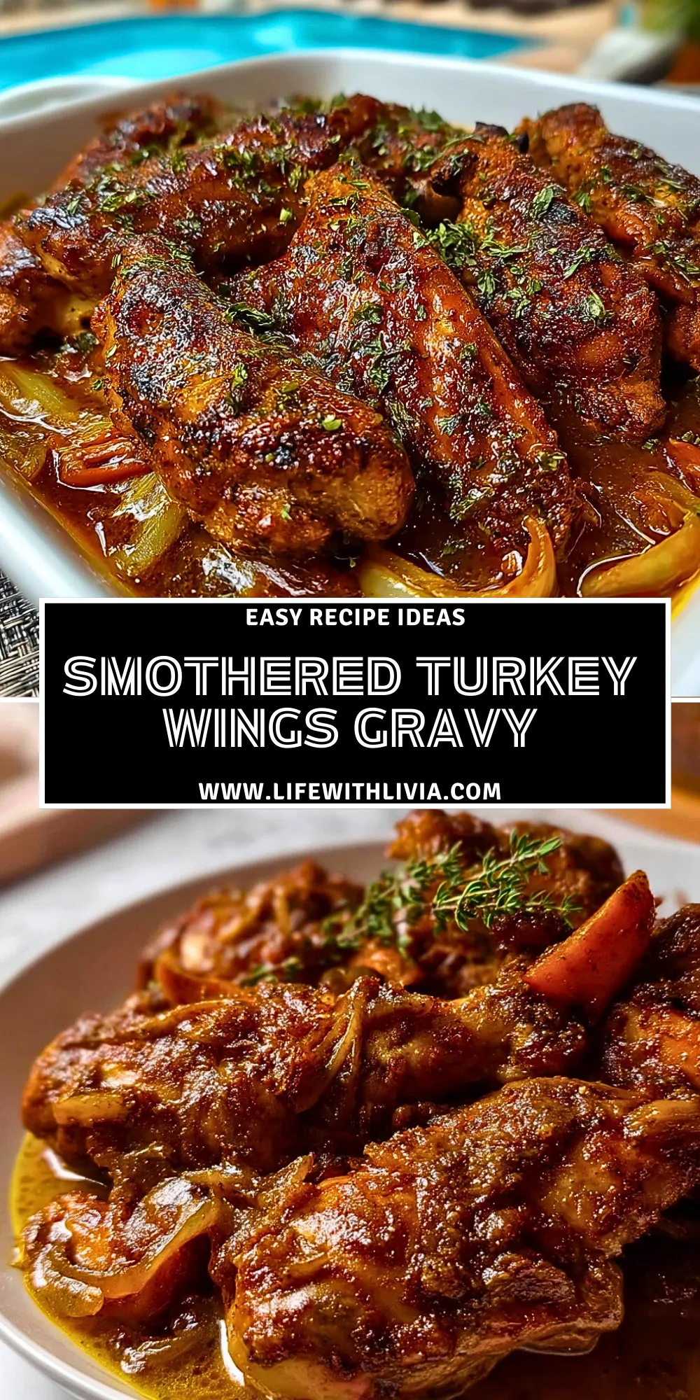 Keywords: smothered turkey wings, baked turkey wings, soul food dinner, comfort food, gravy recipe