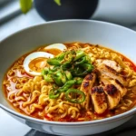 Ready in under 30 minutes, this Spicy & Creamy Chicken Ramen is a bold and comforting bowl layered with flavor. Smoky grilled chicken, jammy eggs, rich broth, and chewy noodles come together in a dish that tastes like it came from a ramen shop but is made right in your kitchen. It’s the ultimate easy recipe for a quick dinner, cozy lunch, or satisfying weekend treat. Great for spicy food lovers and anyone looking for new food ideas or dinner inspiration. This is a must-try among your easy dinner recipes or savory comfort meals!