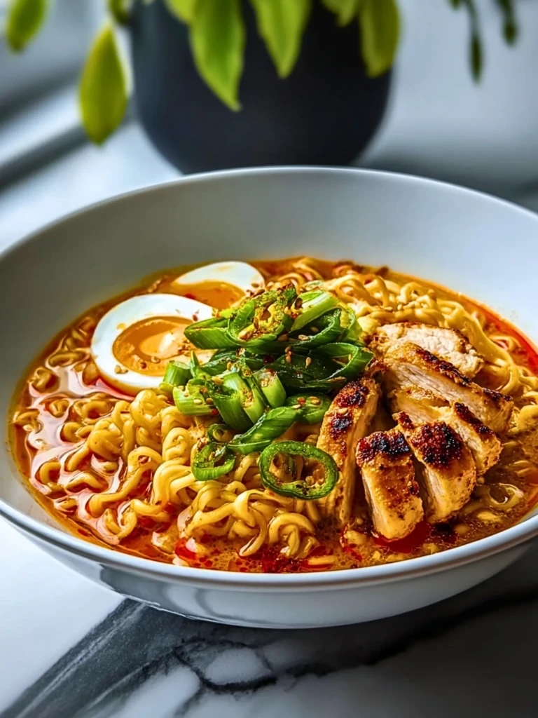 A bowl of Spicy & Creamy Chicken Ramen is the kind of soul-warming comfort food that transforms an ordinary night into something unforgettable. With tender grilled chicken, rich and silky broth, perfectly jammy eggs, and a medley of bold seasonings, this recipe hits every craving. It’s cozy, spicy, creamy, and oh-so-satisfying — like a hug in a bowl.