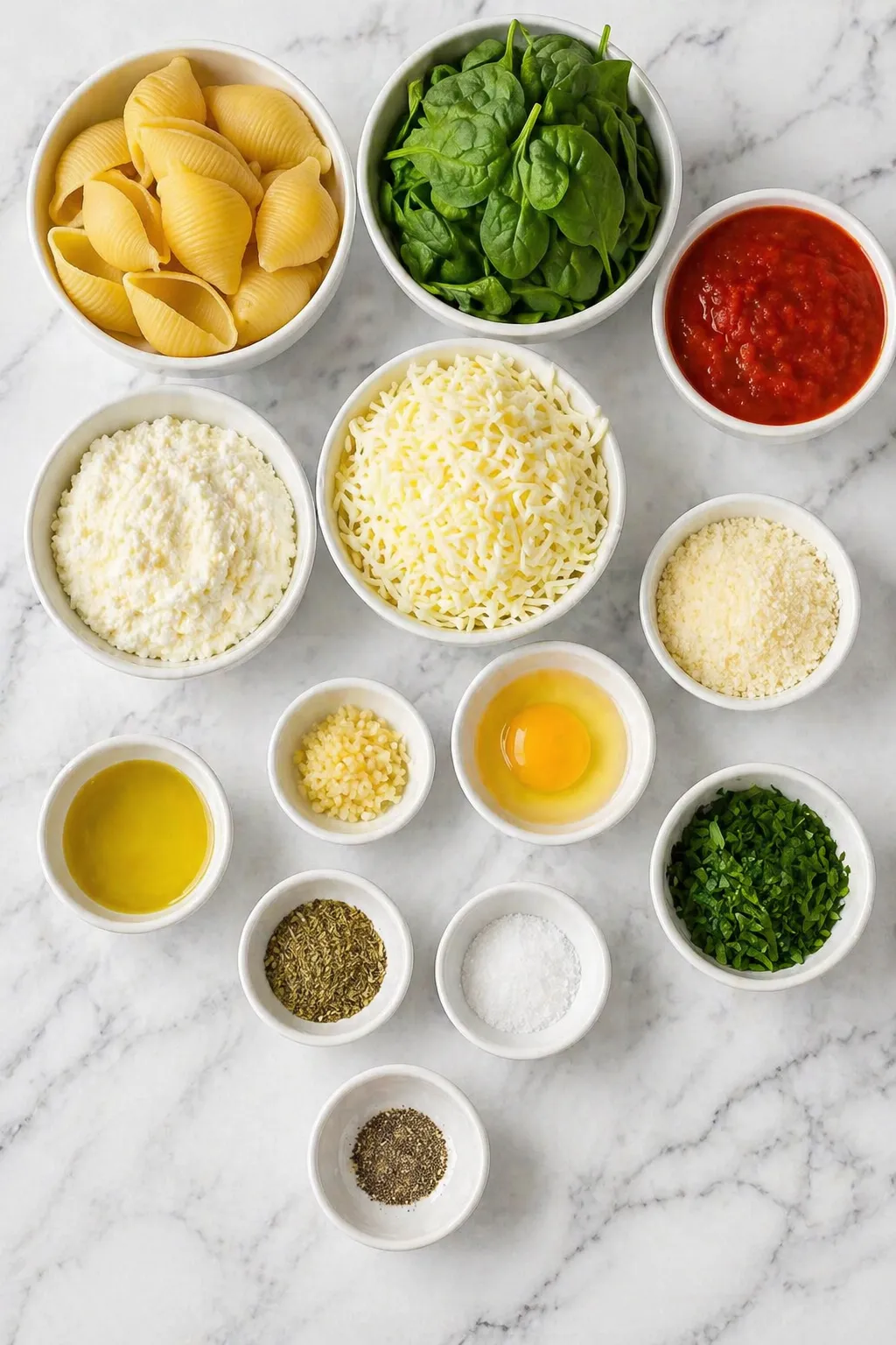 - Egg — helps bind the ricotta filling so it sets nicely inside the shells.