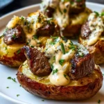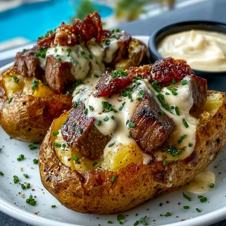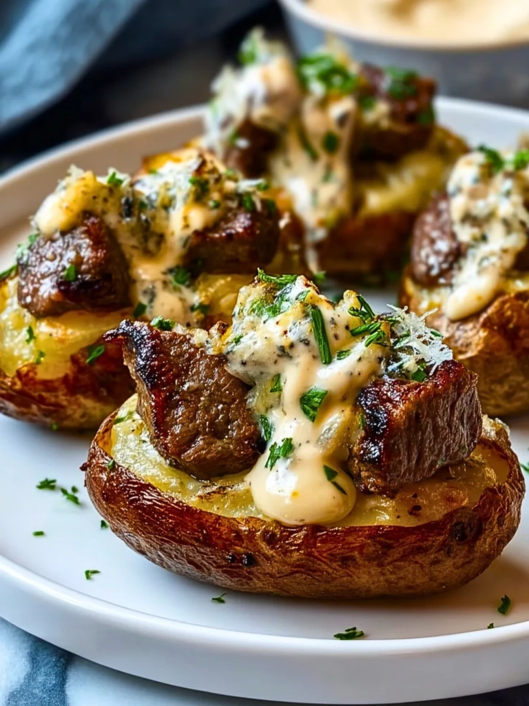 Each bite gives you everything you crave — the satisfying crunch of potato skin, the juicy richness of perfectly seared steak, and the creamy, cheesy melt of that luscious sauce. Pair it with a crisp salad or some roasted veggies, and you’ve got a well-rounded dinner that’s as fun to eat as it is delicious to serve.