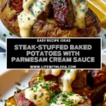 Steak-Stuffed Baked Potatoes with Parmesan Cream Sauce are the ultimate comfort food mashup — crispy, creamy, savory, and satisfying all in one. It’s a recipe that feels indulgent yet doable on a weeknight. Whether you’re hosting or just treating yourself to a flavorful dinner, these loaded potatoes are guaranteed to impress.