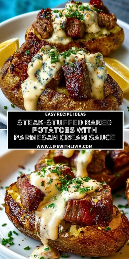 Steak-Stuffed Baked Potatoes with Parmesan Cream Sauce