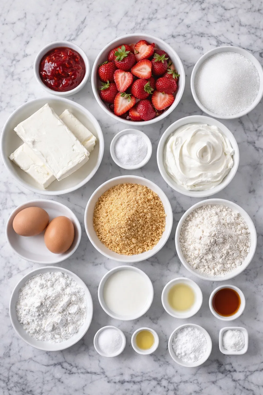 Before you begin, it helps to have all the layers in mind. This dessert is built in stages, and each ingredient has a clear job, whether that is creating structure, adding creaminess, or bringing in fresh strawberry flavor.
