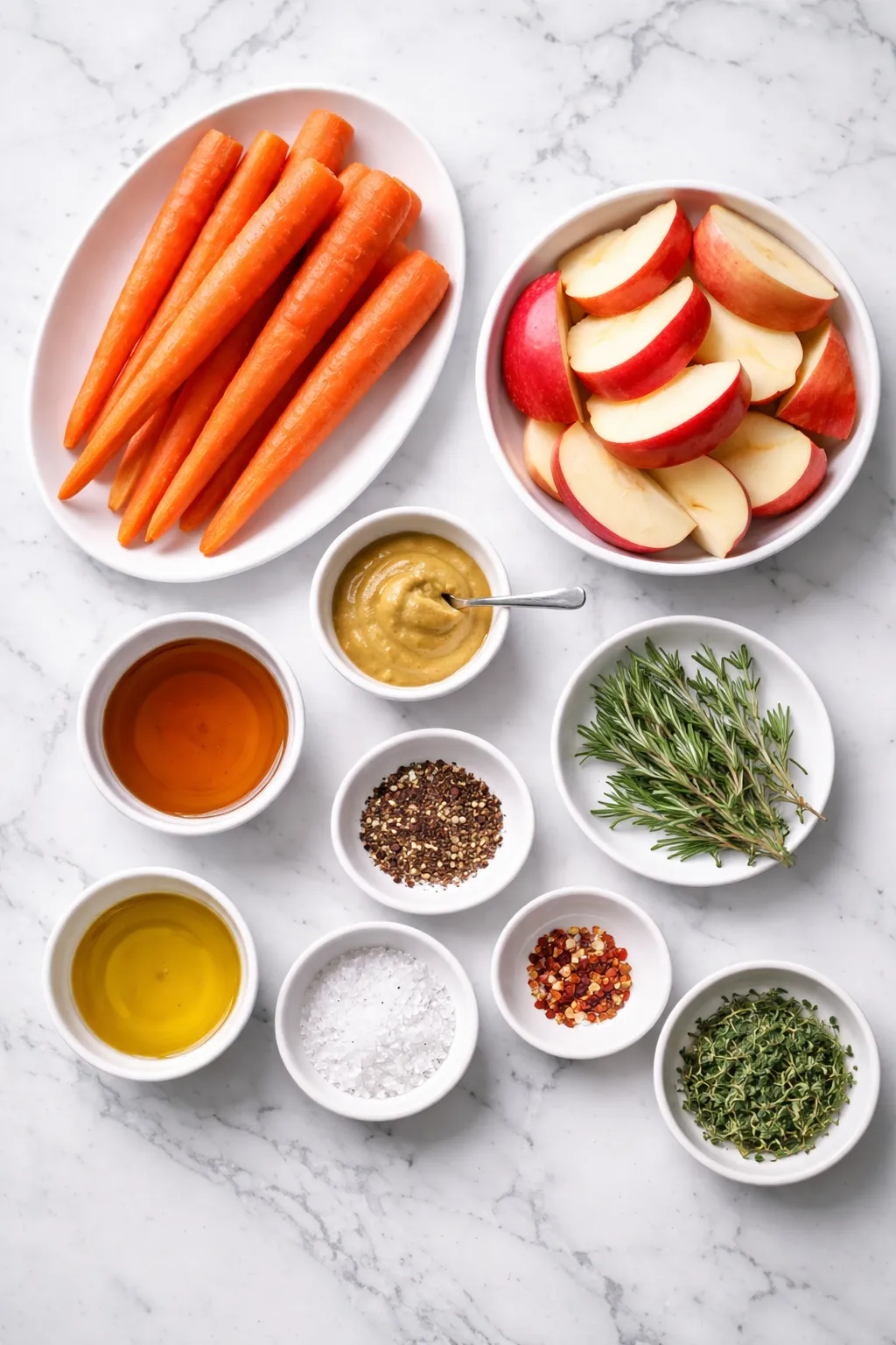 Keywords: maple dijon carrots, roasted apples, easy side dish, holiday sides