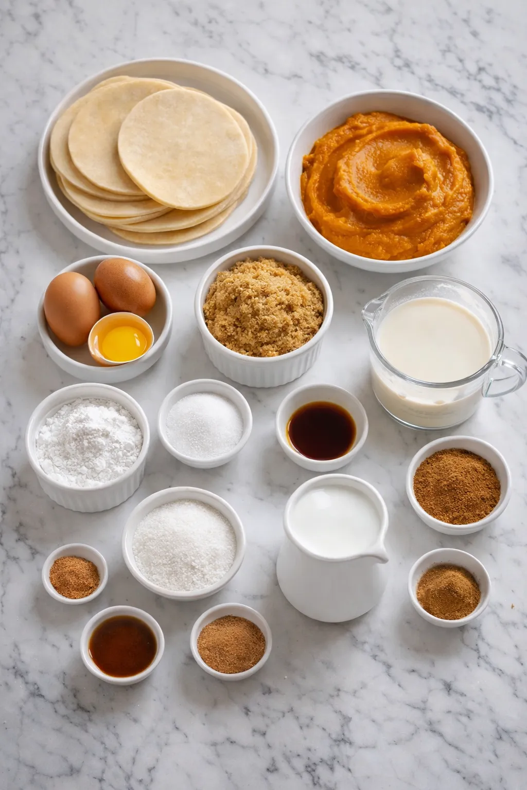 - Pie crusts – Use refrigerated pie crusts or a homemade dough for a flaky, buttery base that holds the creamy pumpkin filling.