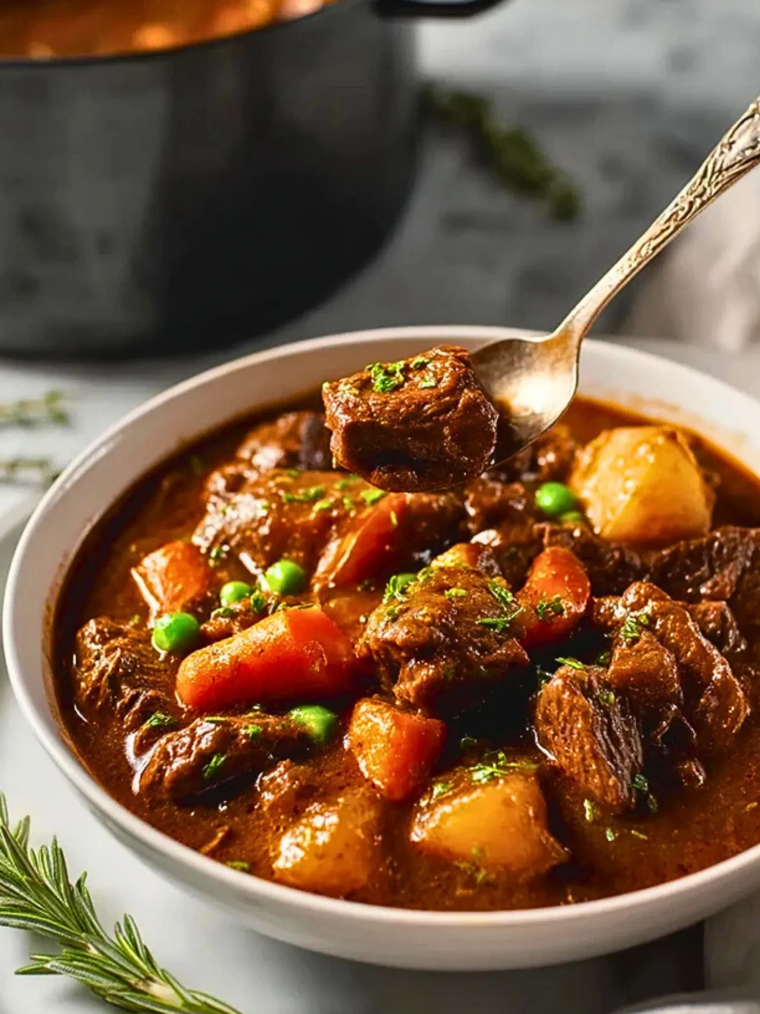 This stew hits all the right notes—tender beef, velvety broth, and perfectly cooked vegetables. The slow simmering process allows the flavors to deepen and meld together, turning simple ingredients into something extraordinary. It’s also highly customizable: add mushrooms, omit peas, or adjust the seasoning to your taste.