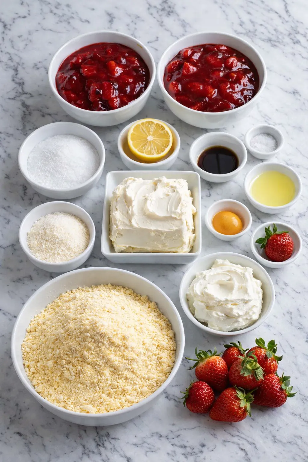 - Fresh strawberries – For garnish and a pop of freshness that makes each slice feel bakery-worthy.