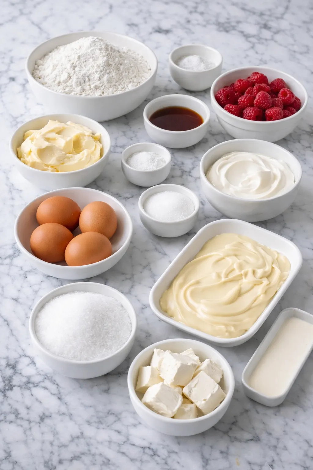 - Vanilla extract: rounds out the flavor and supports both the white chocolate and raspberries.
